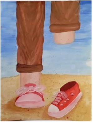 Ondanks alles blijven de kinderen ongelooflijk veerkrachtig. Elke nis in de presentatie bevat een schilderij van voor 7 oktober 2023 en een schilderij van na 7 oktober 2023 met begeleidende teksten. De serie van voor 7 oktober bevat enkele originelen. De overige nissen bevatten reproducties omdat we helaas de originele werken niet kunnen tonen; deze werken kunnen Gaza niet verlaten.